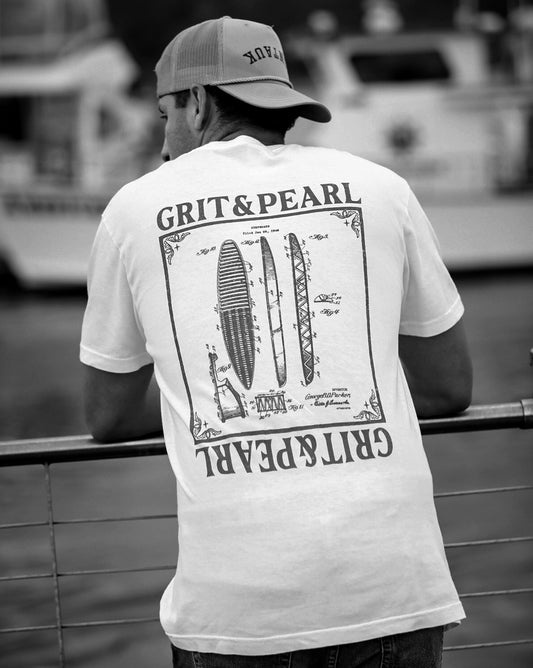 SURFBOARD BLUEPRINT TEE - GRAPHITE GRAY X WHITE