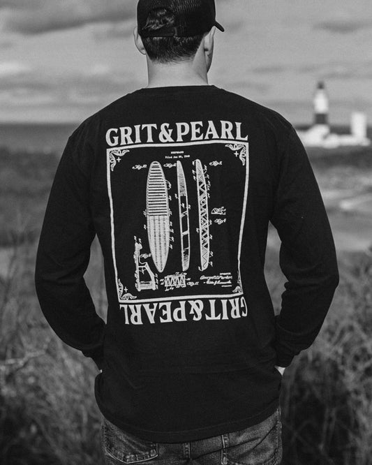 SURFBOARD BLUEPRINT - LONG SLEEVE SHIRT - BLACK X WHITE