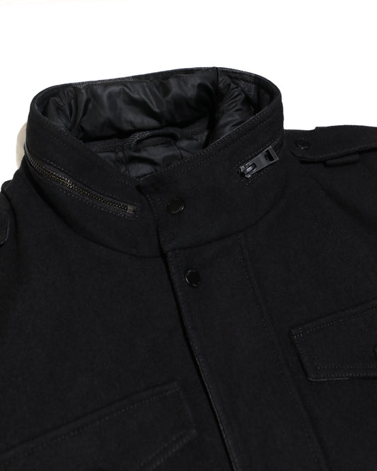 GUESS BLACK WOOL- BLEND INSULATED MILITARY QUILTED COAT
