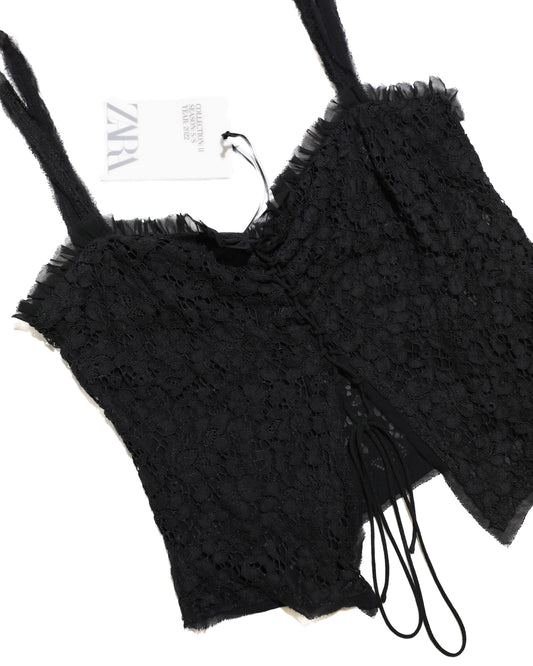 BRAND NEW ZARA LIMITED EDITION FLORAL CROP TANK TOP WITH LACE-UP FRONT